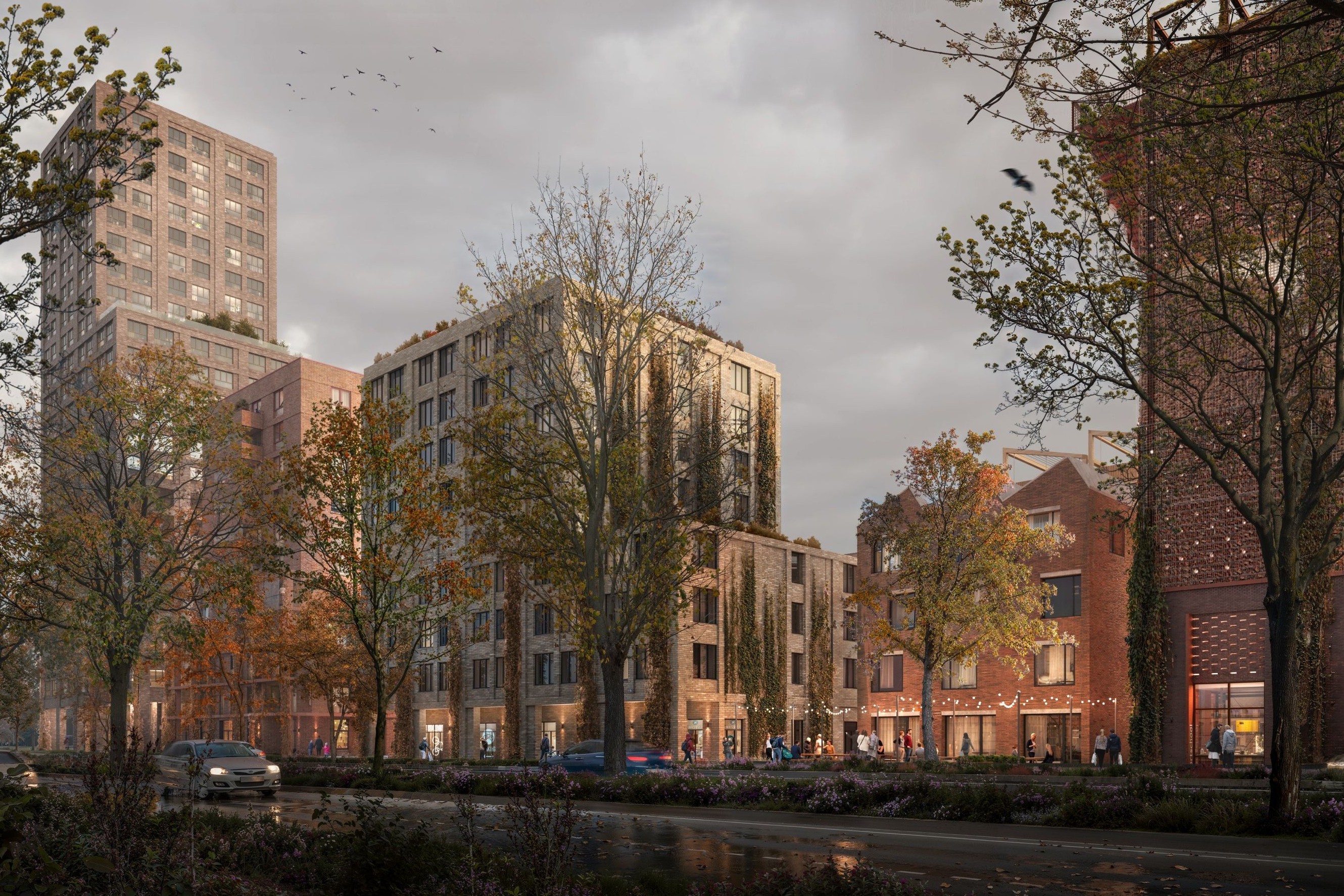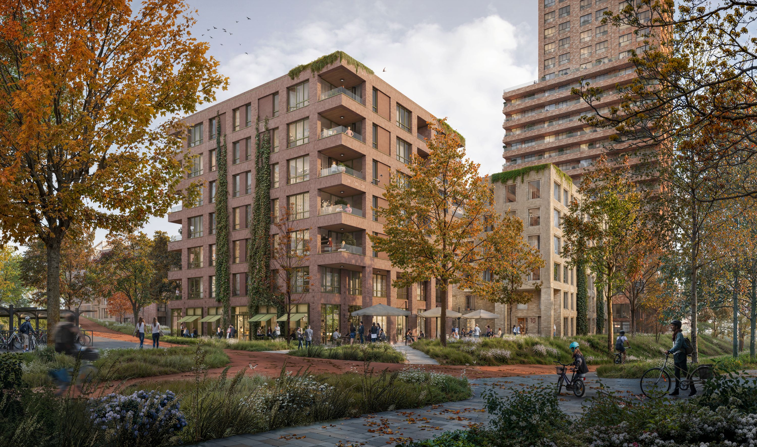 The façades are inspired by Nijmegen’s local architecture – from post-war heritage to industrial brick buildings. A palette of brick forms the base, enriched with frameworks, arcades, and pergolas that create soft transitions between inside and outside. Subtle brick bonds, patterns, and joints echo Nijmegen’s tradition while adding depth and variety to the architecture.